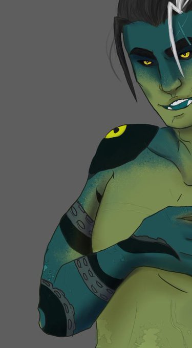I listened to this song and caught feelings. Also I went whole hog with the Fjord pact-tattoo design I'd been percolating on... Melora's symbol still kinda looks like an eye! Anyway, them!