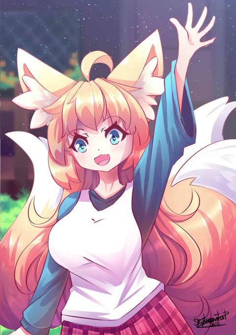 Uma OC minha: Tomoe, incrível que parei pra pensar que nunca desenhei uma kemonomimi com mais de uma calda xD então ela surgiu