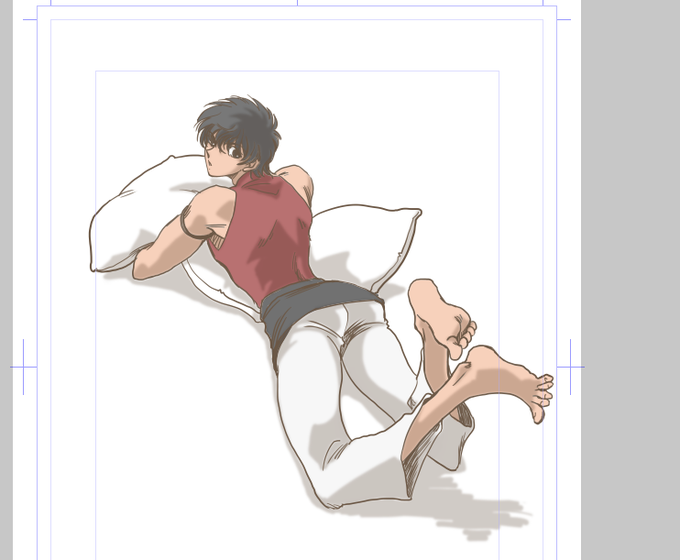 尻ほぼ隠れてるけど!!黒の腰巻が好きなんだよーーー !!! そして推しの腰は細く描きがち…… #いいおしりの日