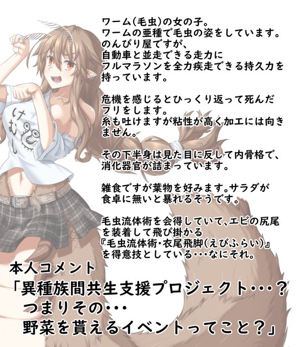 たまに描いてる我が家の毛虫娘の設定的なのです🐛