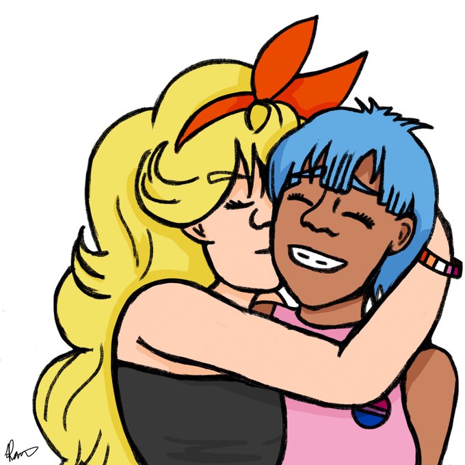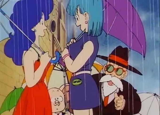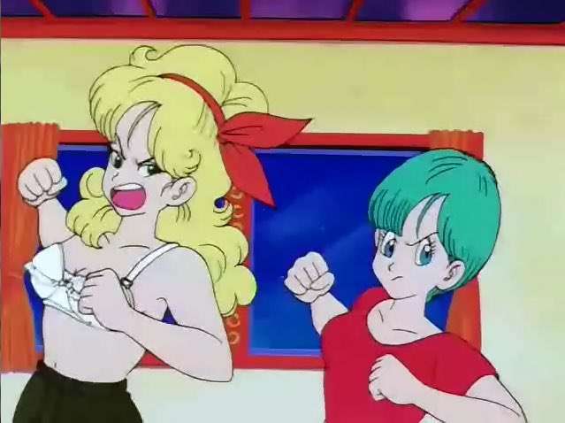 Bulma’s first outfit along with her hair is the bisexual colors