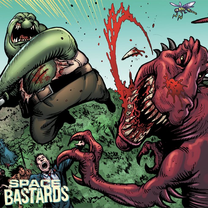 🚀💣Space Bastards🚀💣, dessin de Darick Robertson (co-créateur de The Boys) sur scénario de Joe Aubrey et Eric Perterson.