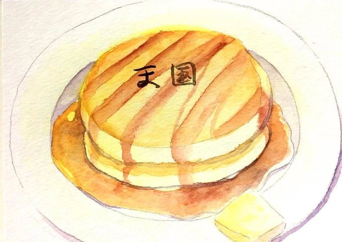 浅草で食べた『天国』さんのホットケーキ。はじめて食べたのに懐かしい味がしました。 #水彩 #固形水彩 #schmincke #シュミンケ #透明水彩