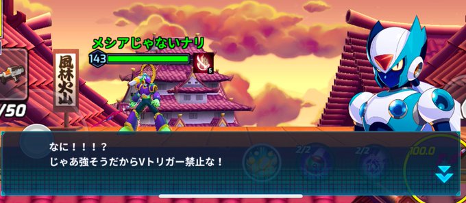 #ロックマンXDiVE ヴィアさんね、あんた今更そんなシリアスキャラみたいな顔してもダメですよ。 (´・ω・`).。oO(Vトリガー禁止って言ったのになぁ)みたいな顔にしか見えませんよ。