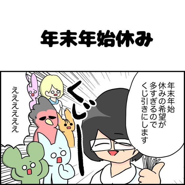 年末年始の休み希望が多すぎるとのことで突如始まったくじ引き。