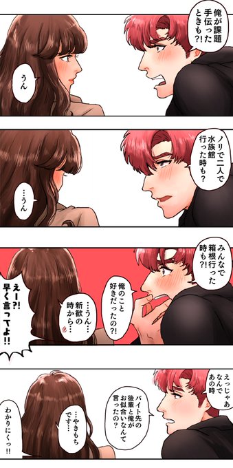 美容院のお兄さんが赤とピンクの中間みたいな髪色してて、その色が素敵で漫画に入れたんだけど。漫画みせたら、「この色ではない」とのこと。何色なんですか。 赤とピンクの中間色、業界の言い方なんなんですか?!?!明日公開するね!!!!