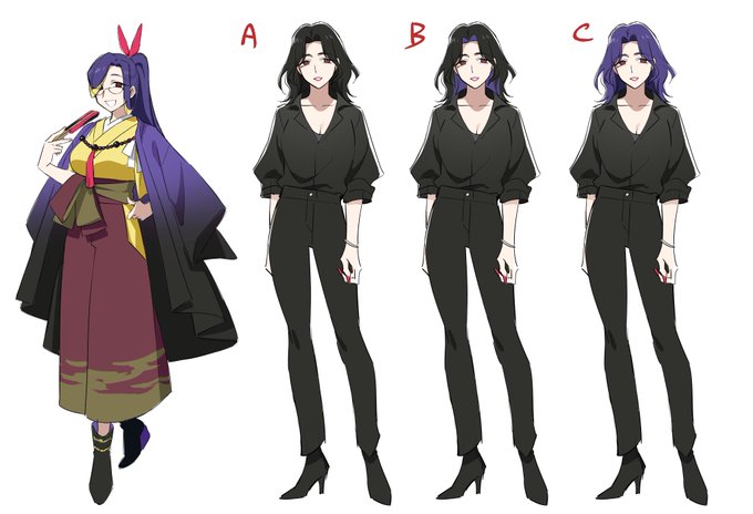 ピンクの文字が呼び名なんだけど〇付けた人達が多分自分で名乗って、他が神連命名だと思う。 あと疾風さんこれだとだいぶ背低いけどキャラデザ調整したからもう少し背高くしたい。 #神憑き異聞