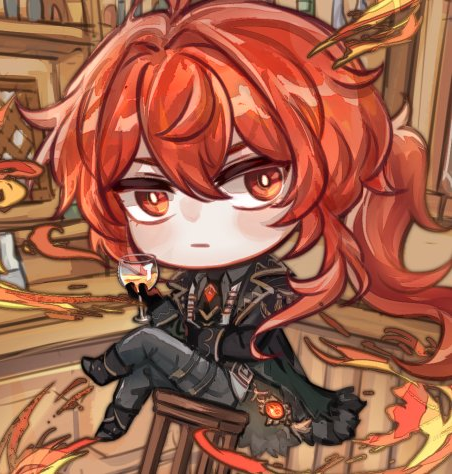 chibi commission for @ichi_goji !! tysm diluc was very fun to paint!! 🔥💕