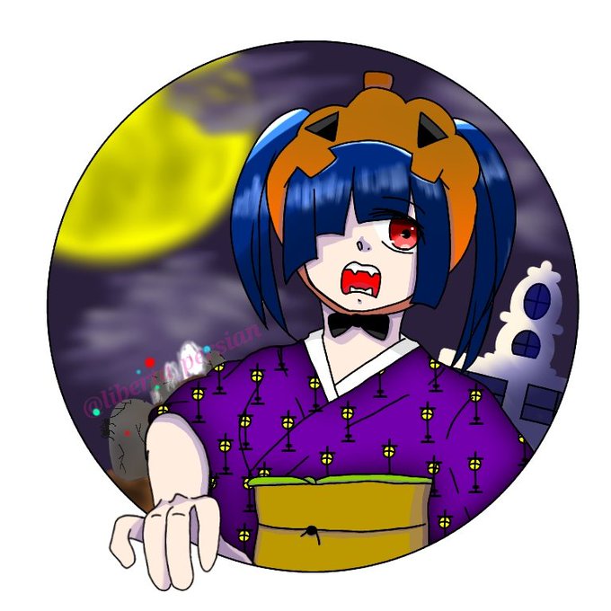 #フォロワーさんに頂いた要素でハロウィンキャラ作る できたよおぉぉぉ!!!!! カボチャの帽子をかぶった着物少女です!柄はガス灯にしました☆ ほんとありがとうぅぅぅ🙇💕