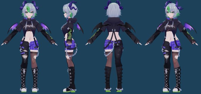 my design → @Nnnoira's design ref → @jjinomu's model + rigging 🥹🖤💜💚
