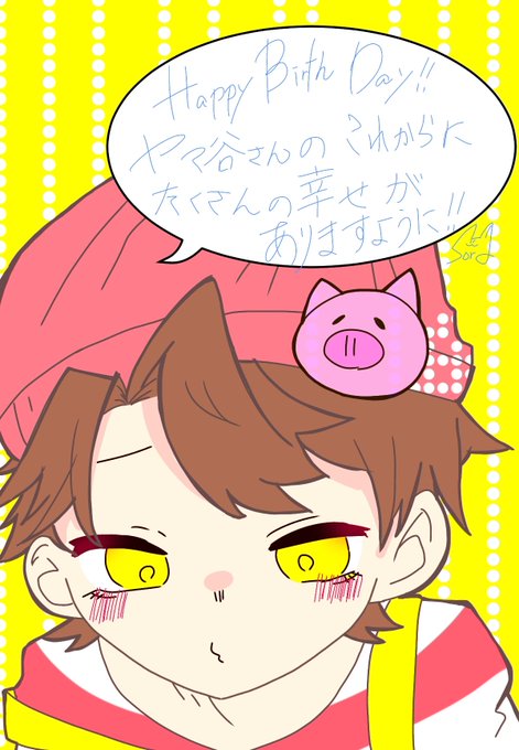 @yamataniiiiii 本当は当日に出そうと思ったんだけどね、本人がいる時のがいいかなって描き直しました!僕自身ヤマ谷さんの推しはこの方しか聞かなかったからなのだけど…と、兎に角お誕生日おめでとうございました!( ´ ▽ ` )/