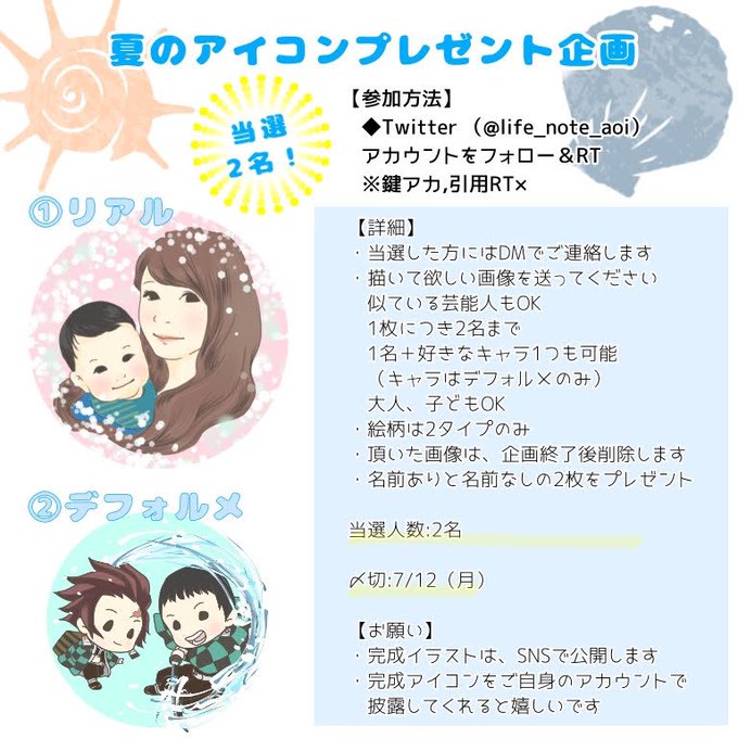 ・引用RTはアプリ仕様上、アイコン応募にカウントされないけど、応援してくれると抽選でイイコトあるよ🎨