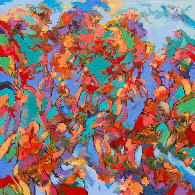 A few of the dynamic paintings included in “Hope Bursts Forth” solo show of @NathanJArt