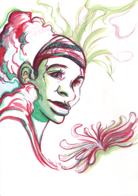 Tried going for a different kind of color scheme here, and having fun with inks & water. I usually think up names for my art really quickly but I’m not getting any ideas for this one. Suggestions?