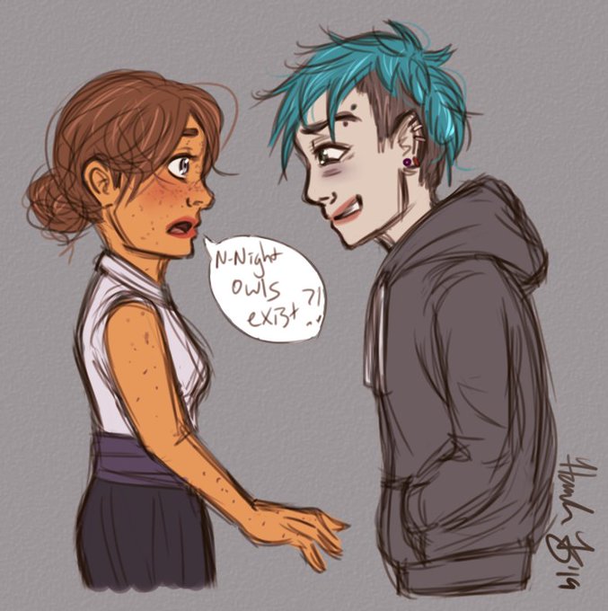 Came up with this concept after work the other day! I imagined this world where night owls & morning people live on different schedules so they never see each other. But this morning girl stays out too late one night & runs into a night person by accident! #oc #conceptart