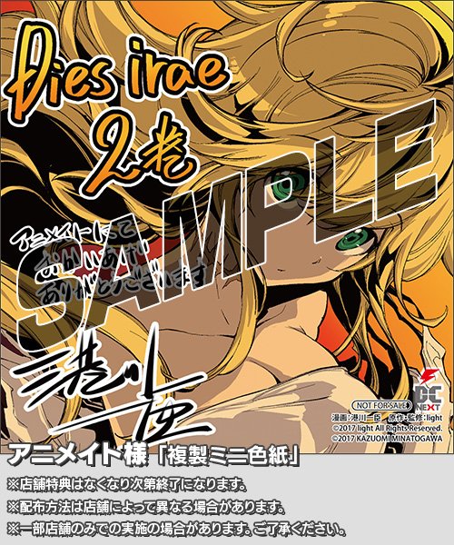 『電撃マオウ』にて好評連載中の『Dies irae ~Amantes amentes~』単行本第2巻が3月27日発売予定! 一部の店舗様では『ポストカード』や『描き下ろし複製ミニ色紙』、『描き下ろしイラストカード』といった特典も付いてくるそうです! 要チェック!