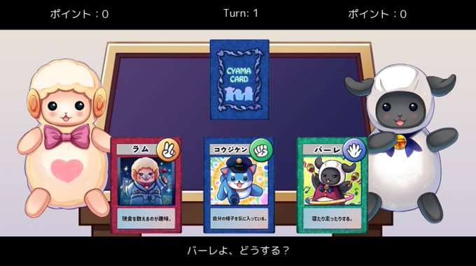 NPC羊のデザインは @ito_kou さん! @nika_hitsuji さんのデザインされた「春の花」と一緒に、今回の会話パートを担当しています。