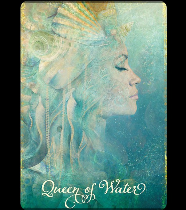 ライトワークス五反田本店より🍀本日の1枚🌈【グッドタロットオラクルカード】🌼《水のクイーン》✨「思いやり、精神的な安定、自己愛とセルフケア、癒す人」 #ライトワークス #コレットバロンリード #オラクルカード #グッドタロット #水のクイーン