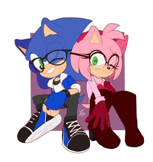 Flat Coloured Chibi Commission for @BlueSteel2002, featuring Sonic & Amy cosplaying as their OCs Alexander & Helen!