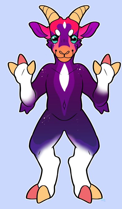 Mystery custom design for @/CraftyDaemon !! They wanted a Vaporwave goat on this base by @/Dracononite and I did my very best! Reminder if you want a mystery design of your own, they’re 💲12! You choose a species and give me a prompt, and I’ll design a surprise character for you!