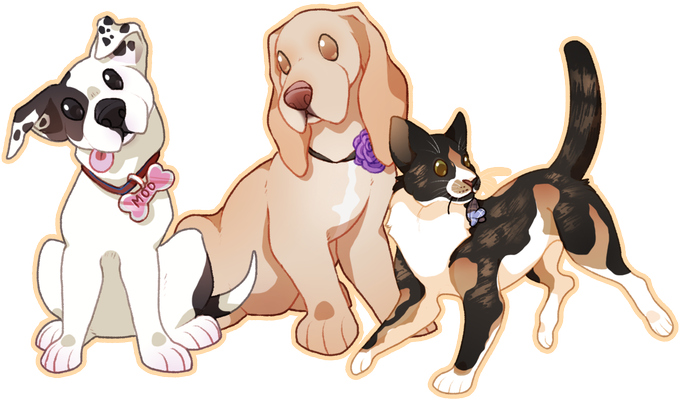 Doodled a trio of animals all based off actual pets XD Gift for @JDerickFox and his mom and sister.