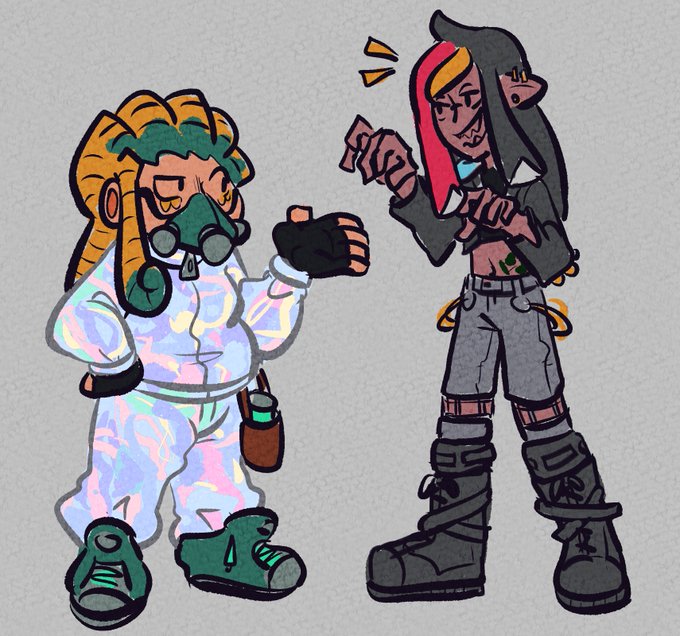 HI #transmascartists I'm Lilo!!! And like drawing my characters, splatoon, and a whole lotta weird things in between. YEEHAW 🤠