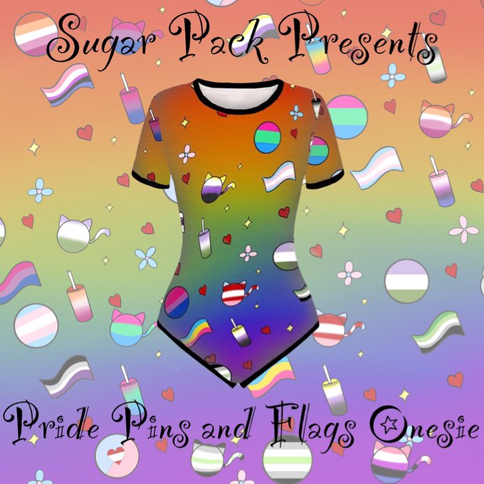I’ve been MIA on here cause I’ve been focusing on my shop, Sugar Pack! We’re releasing our first ever onesie, The Pride Pins and Flags Onesie on our Etsy website: https://t.co/Fa84BIowoj ! Go give a check and with the code PREORDER, you can save on the order! @sugar_pack_familia