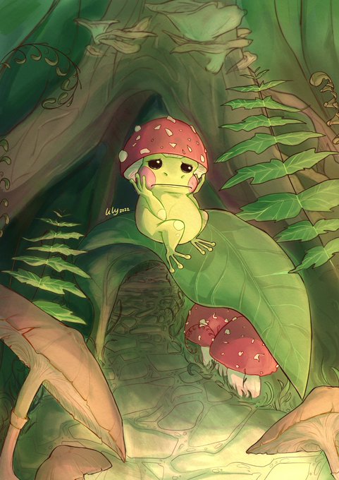 #frog #sad #forest #illustration #mushroom #sadfrog #green #redmushroom #toad #cute #makehimsmileplease #digitalillustration #artistsontwitter