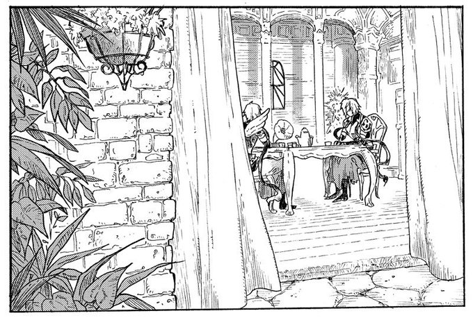 なんかもうひたすらルシオとルシフェル様が座って会話してるだけなので…まじで構図の限界を感じてしまう…。次どこにカメラ置けば良い???