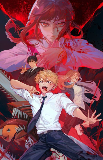 so happy csm finally got an anime!!late csm print to celebrate woo this was a lot of fun to do and i guess. fitting for late halloween HHAHA closeups of the squad and makima i guess. im upset she was so fun to draw for me lmao