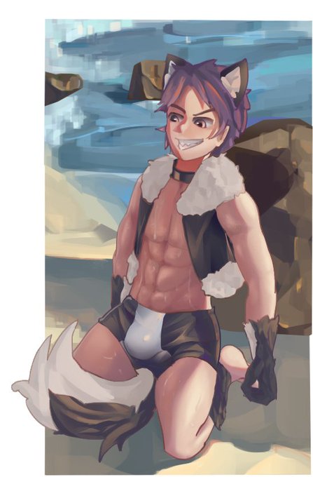 练习绘画 海岸旁边的yoichi! 他在炫耀什么!? @mikkoukun (背景和人物动作来自网图)