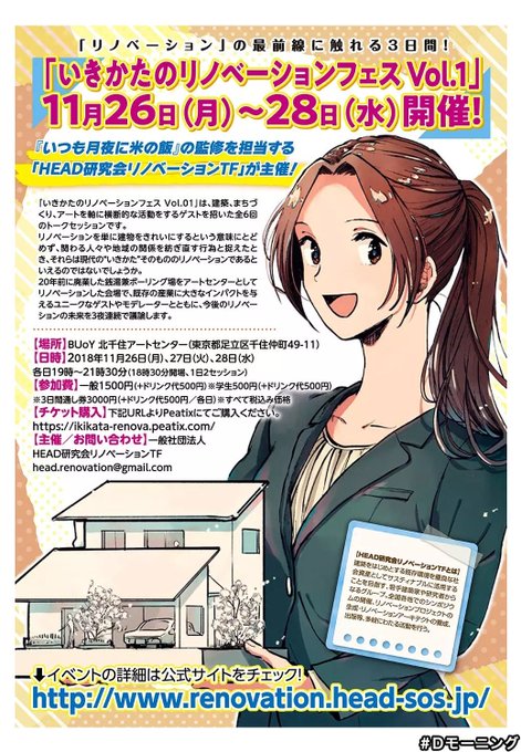 イベントやります。建築・アートの世界で活躍する若手クリエイターが集い「生き方」について公開議論します。26日(月)~28日(水)。建築リノベ漫画「いつも月夜に米の飯」のご縁で、僕も漫画編集者として26日に参加。ご興味あればチケットお安くできます!担当作に還元できるように刺激受けてきます。