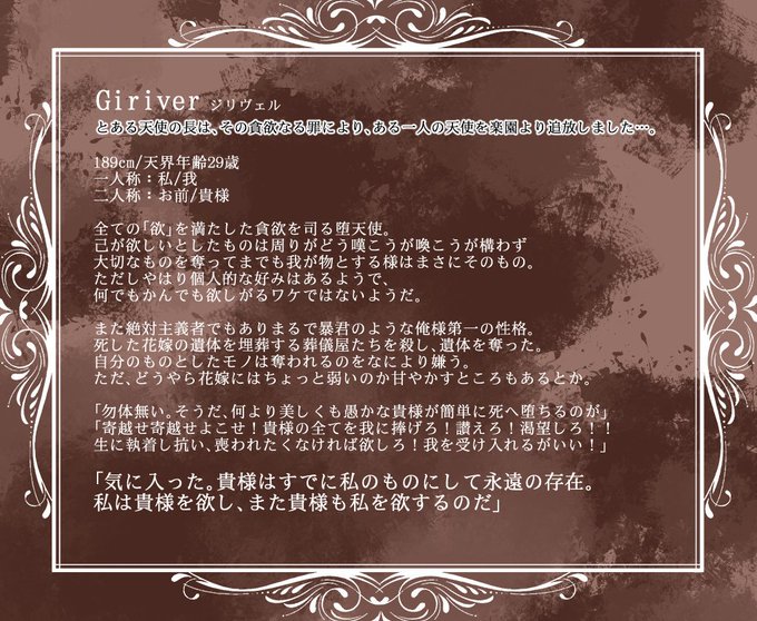 【@F_PofBs】三人目。貪欲な堕天使の旦那様です。目から翼が生えてる。事前関係有により花嫁募集はしていません。人外仲間や悪友とかの関係はお気軽にどうぞ!宜しくお願いします☺ #花嫁の葬列 #花葬_旦那様