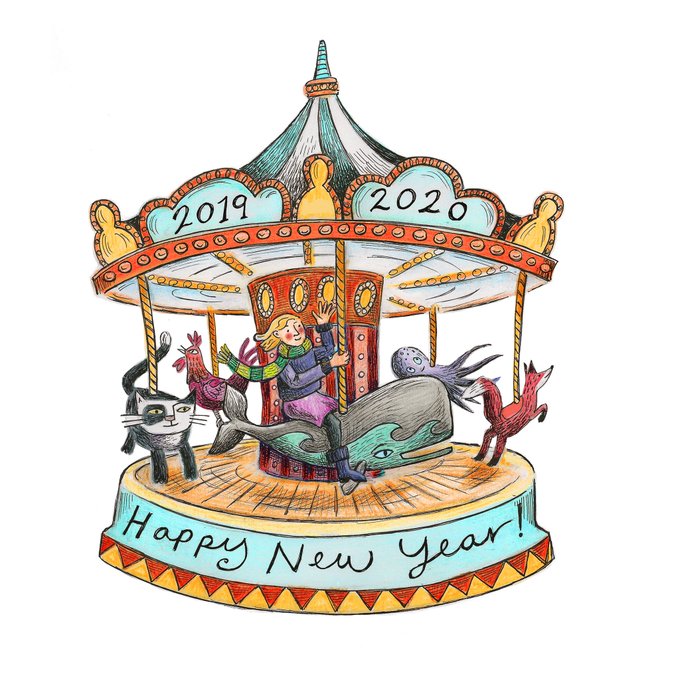 HAVE A VERY HAPPY NEW YEAR, ONE AND ALL! #happynewyear2020 #kidlitart #carousel