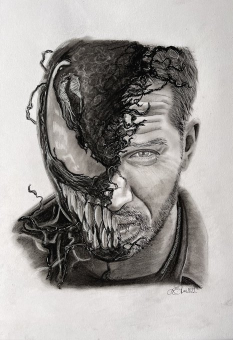 Charcoal Portrait of Tom Hardy as Eddie Brock / Venom from @VenomMovie