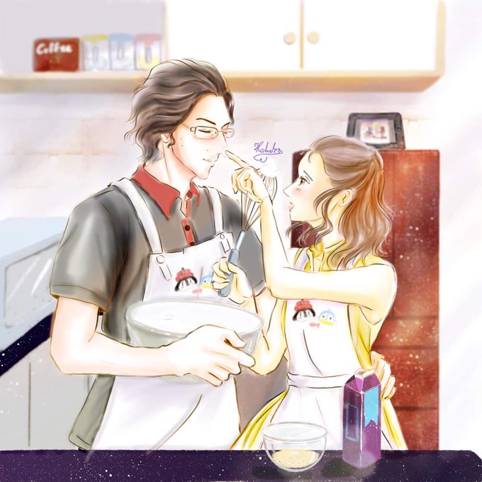 BennyBen and ReyRey enjoy their first weekend at Ahch-To in the kitchen because Benny Ben knew that ReyRey had missed Jakku food already😆