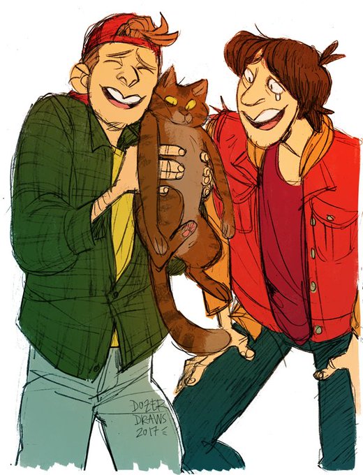 evil Bill and Ted are after the cats for cuddles, not to squash them 👏#dozerdraws #billandted