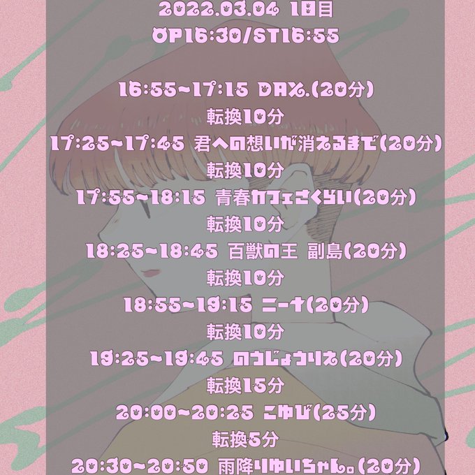 16:30/16:55 ¥2000/¥2500