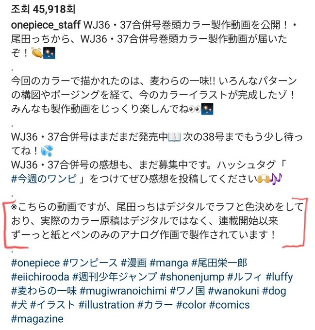 최근에 안건데 작업과정에서 러프나 컴퓨터로 칠하는 채색은 테스트용이고 최종본은 연재이래 내내 아날로그로 작업한다고 함