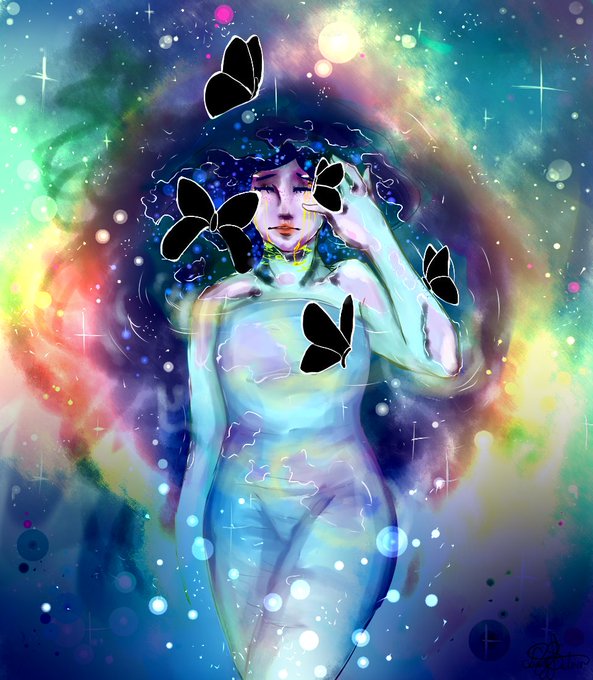 Supernova #drawing #livingsilver #digitalart #girl #space #butterflies #art