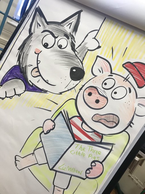 Alternative tales at the lovely Coxhoe Primary today!Big Bad Pig biffed in the Hairy Postman 😂 lovely enthusiastic,bright kids 😍