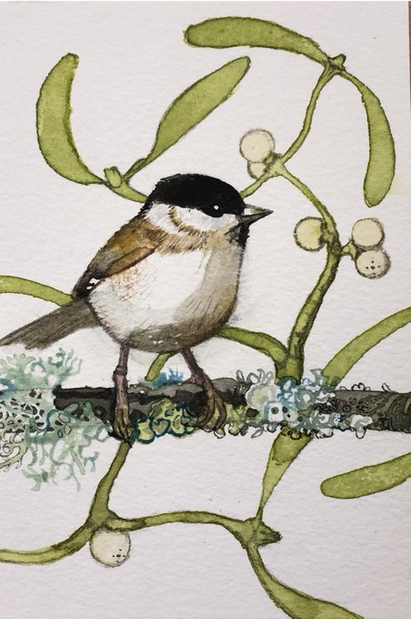 Today’s #1000postcards Marsh tit & willow tit are impossible to tell apart unless you listen to them singing. They look like coal tits but without the white stripe down the back of the neck
