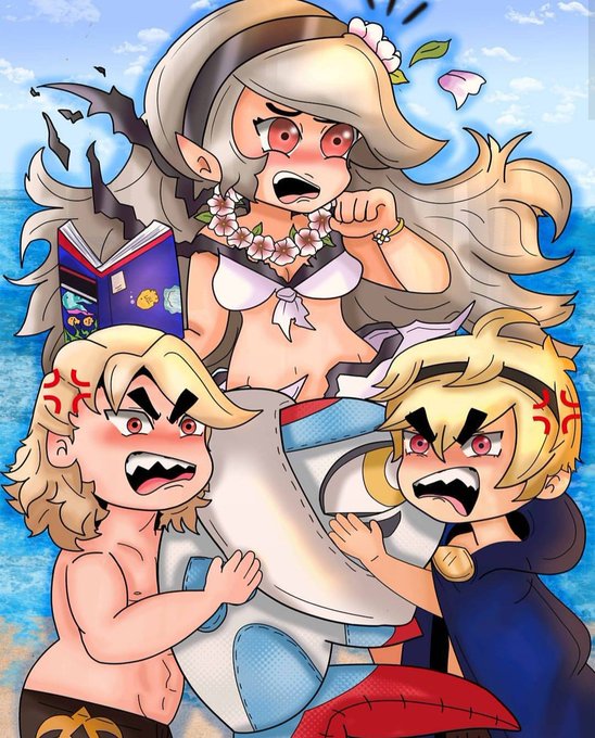 Drew this when I FINALLY summoned summer!Corrin that one time she was on the legendary banner a while back. I so imagine this is how her brothers would react if ANYONE was near her if she received damage hahah #FEHeroes