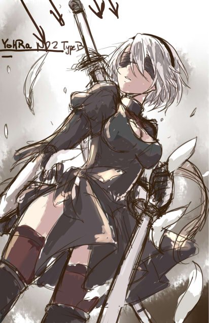 Rough drafts of Nier prints i'm working on.....i've stared at these for so long i'm losing confidence in them... OTL