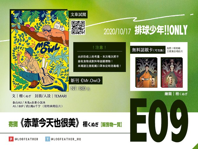 推特也放一下!明天小排球ONLY在【E09】 新刊是突發的兔赤-泰山AU小說本,我昨天還加畫了新的特典😚💕大家快來找我玩!