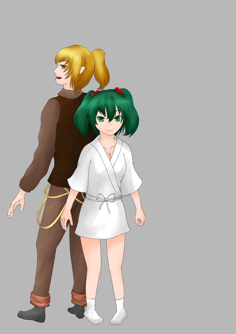 光津零(ヤマメ)と枝木瑠衣(キスメ)のツーショットな支援絵(自作) 画力のせいでAPPだだ下がりしてるが気にしない。 キスメがほぼそのままなのも気にしない。