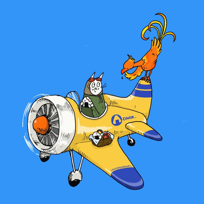 空中ランチ🍙 空でおにぎり食べてたら 不死鳥に見られてた #イラスト #illustration #Photoshop #procreate