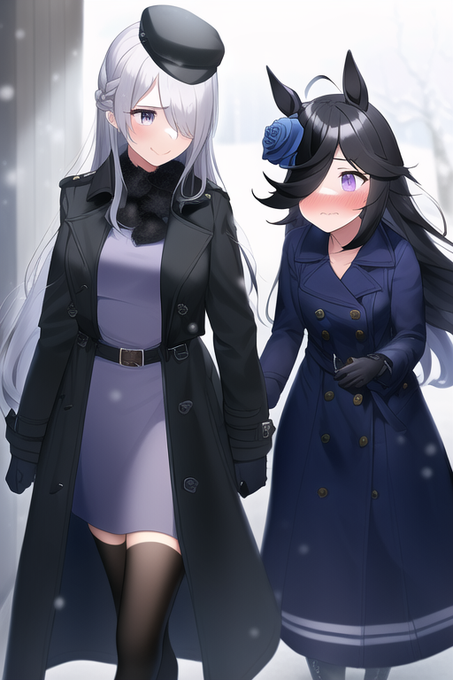 『プロジェクトセカイの星乃一歌と朝比奈まふゆ(2人の服はリクルートスーツを着て前をはだける姿)の2人が仲良くしているところがみたいです。』