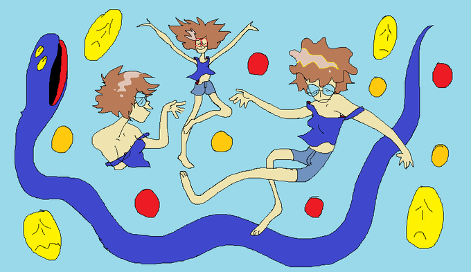 @javo_s_ i don't have a fursona anymore so i drew some of my fun little ocs in it instead !!! their names are lo', brain, and pencil !!!<3
