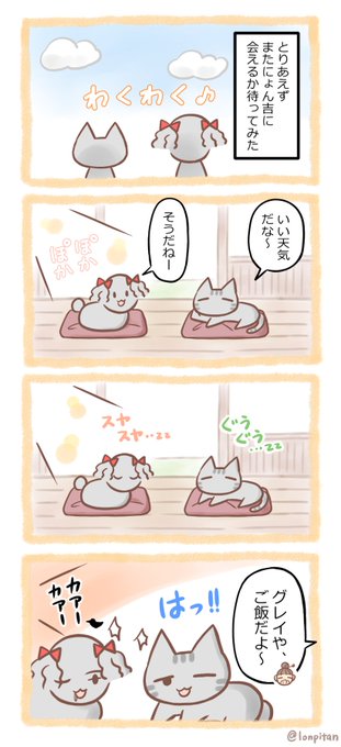 「まったりにゃんこ。」漫画6 にょん吉みつけた!🐍 #創作漫画